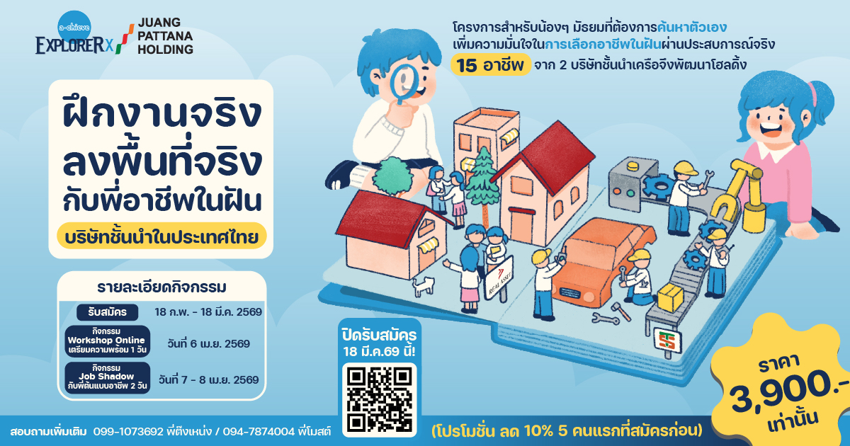 🏭 กิจกรรม Job Shadow กับพี่ต้นแบบอาชีพ 2 วัน วันที่ 7 – 8 เม.ย. 2569 ณ สถานที่จริง