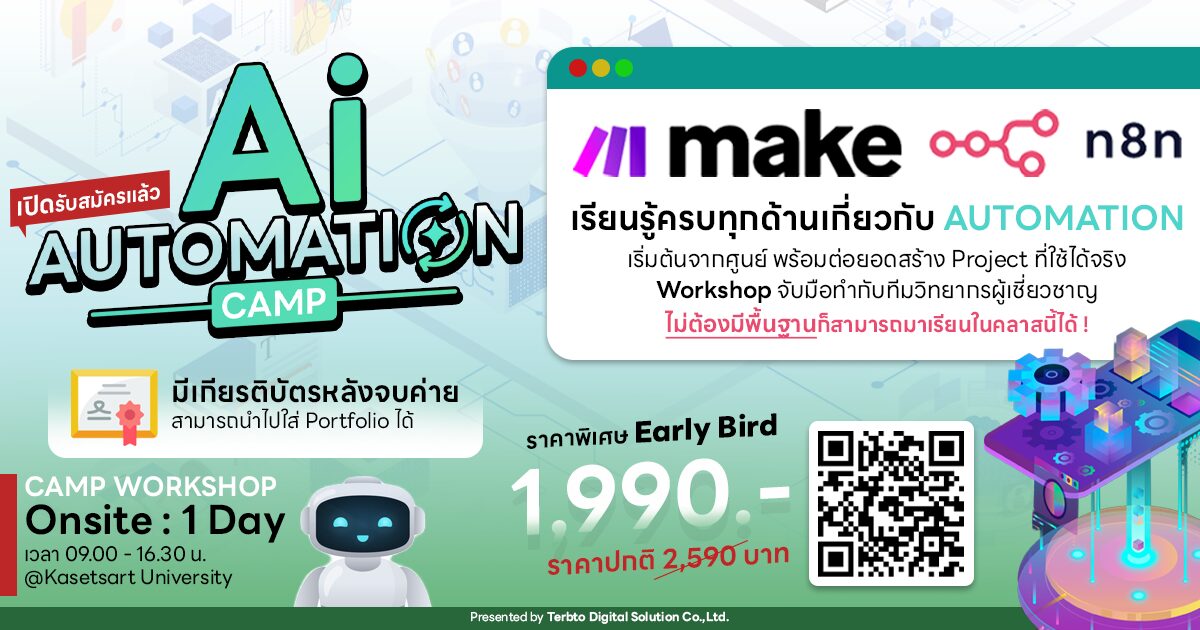🤖 อยากให้ลูกก้าวทันเทคโนโลยี AI และ Automation ที่กำลังมาแรงที่สุดในตอนนี้ไหม? เราเปิดค่าย AI Automation แบบ Hands-on ที่น้องๆ จะได้เรียนรู้และสร้างระบบอัตโนมัติที่ทำงานได้จริงภายใน 1 วันเดียว !