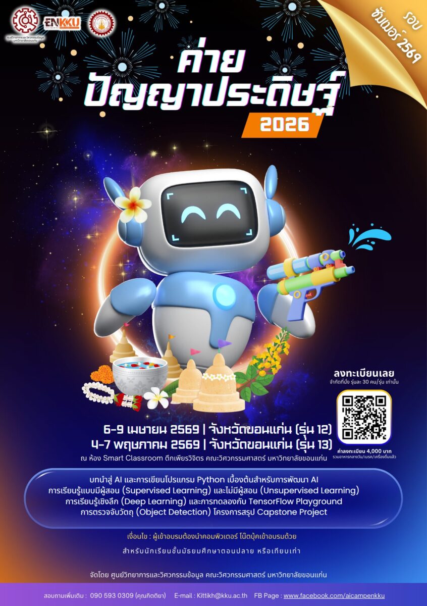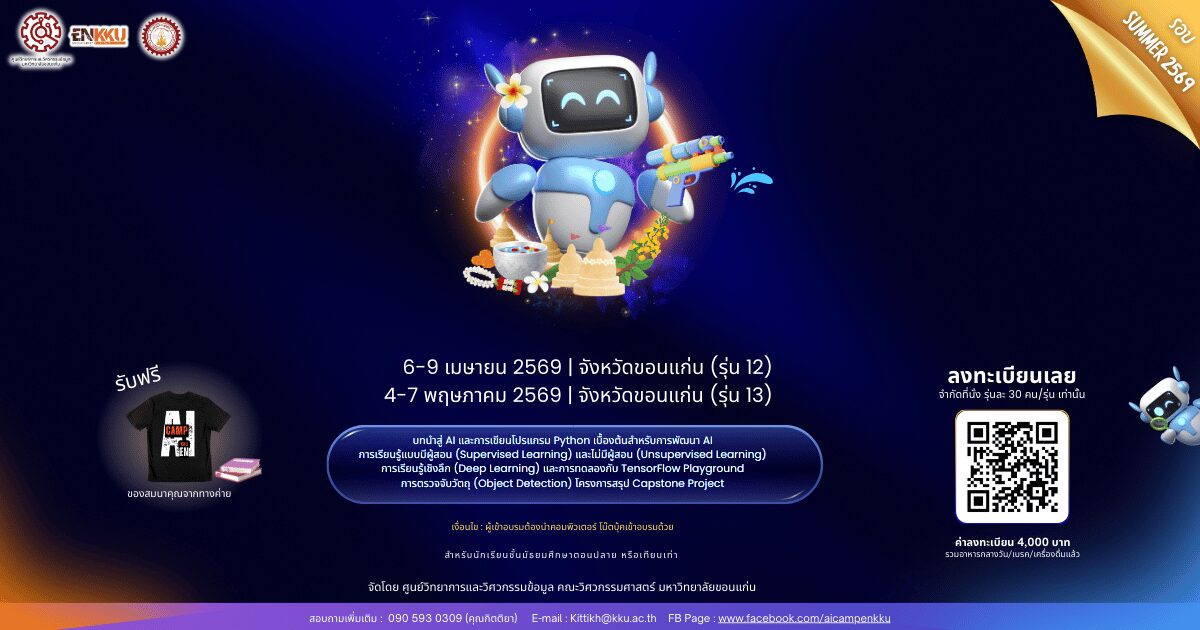 รายละเอียดการติดต่อ: 📞 โทร: 090 593 0309 (คุณกิตติยา) 📧 Email: [email protected] FB: www.facebook.com/aicampenkku