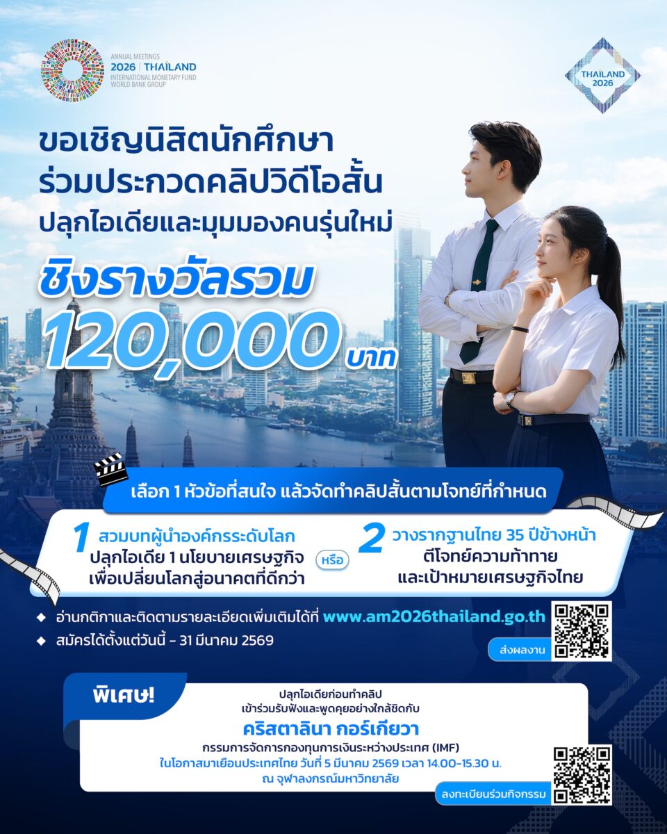 เปิดเวทีคนรุ่นใหม่ ประกวดคลิปสั้น-ประชันไอเดียยกระดับเศรษฐกิจไทย 2026 IMF–World Bank Group Annual Meetings