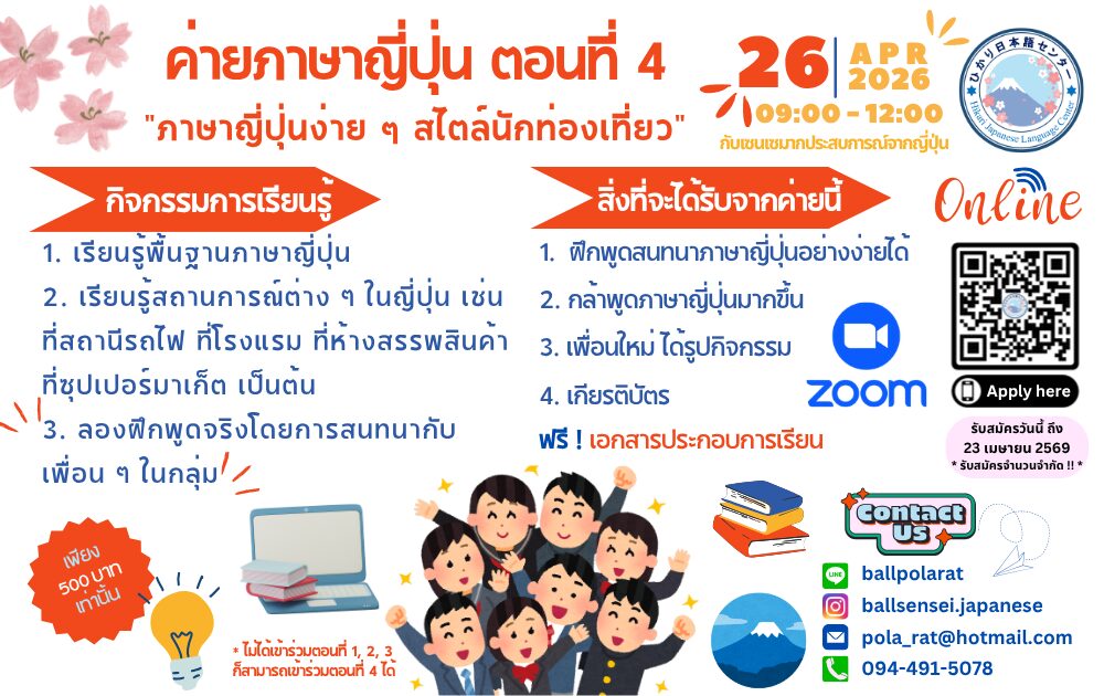 🚀✨ ค่ายภาษาญี่ปุ่น ตอนที่ 4 “ภาษาญี่ปุ่นง่าย ๆ สไตล์นักท่องเที่ยว” (รุ่นที่ 2) ✨🚀
