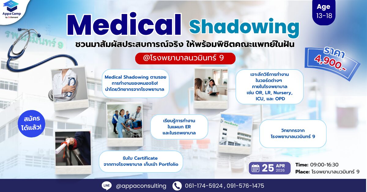 🔹Medical Shadowing ตามรอยการทำงานของหมอจริง นำโดยวิทยากรจากโรงพยาบาล