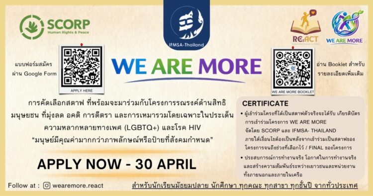 WE ARE MORE 🌈 มาร่วมเป็นส่วนหนึ่งของโครงการที่มีความหมาย! 🫱🏻🫲🏼 โครงการรณรงค์ด้านสิทธิมนุษยชน ที่มุ่งลดอคติ การตีตรา และการเหมารวม เหมาะสำหรับผู้ที่อยากจะเก็บพอร์ทเข้าสายสุขภาพและอื่นๆ