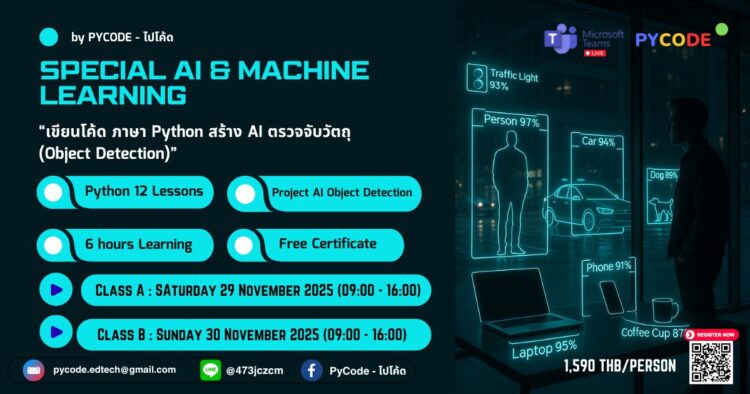 🌍 “ก้าวจากผู้เรียน สู่ผู้สร้างเทคโนโลยี AI ตรวจจับวัตถุ - Object detection ที่เปลี่ยนวิถีชีวิตผู้คนทั้งโลก ด้วยงานจริง” 🌟 เจาะลึก หลักการ Computer Vision + Machine Learning เเบบจัดเต็ม