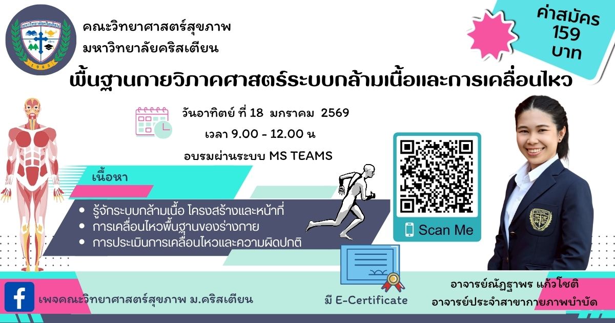 คณะวิทยาศาสตร์สุขภาพ มหาวิทยาลัยคริสเตียน ขอเชิญชวนน้องๆชั้นมัธยมปลายทุกคน เข้าร่วมโครงการอบรมออนไลน์ เรื่อง