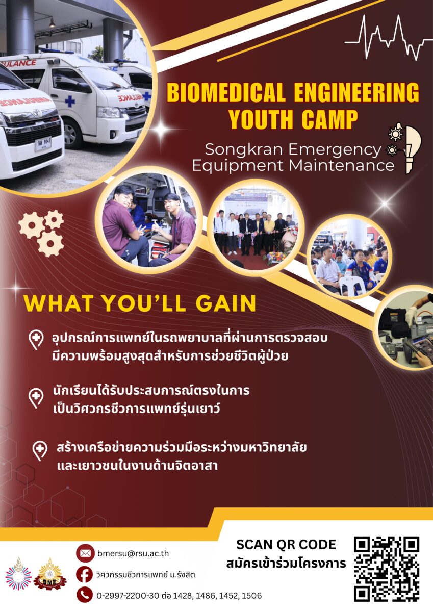 พิเศษ : สำหรับผู้ที่สนใจจะเข้าศึกษาต่อในระดับปริญญาตรี สาขาวิชาวิศวกรรมชีวการแพทย์ มหาวิทยาลัยรังสิต สามารถเตรียมพอต มาสัมภาษณ์ในวันอบรมได้เลย