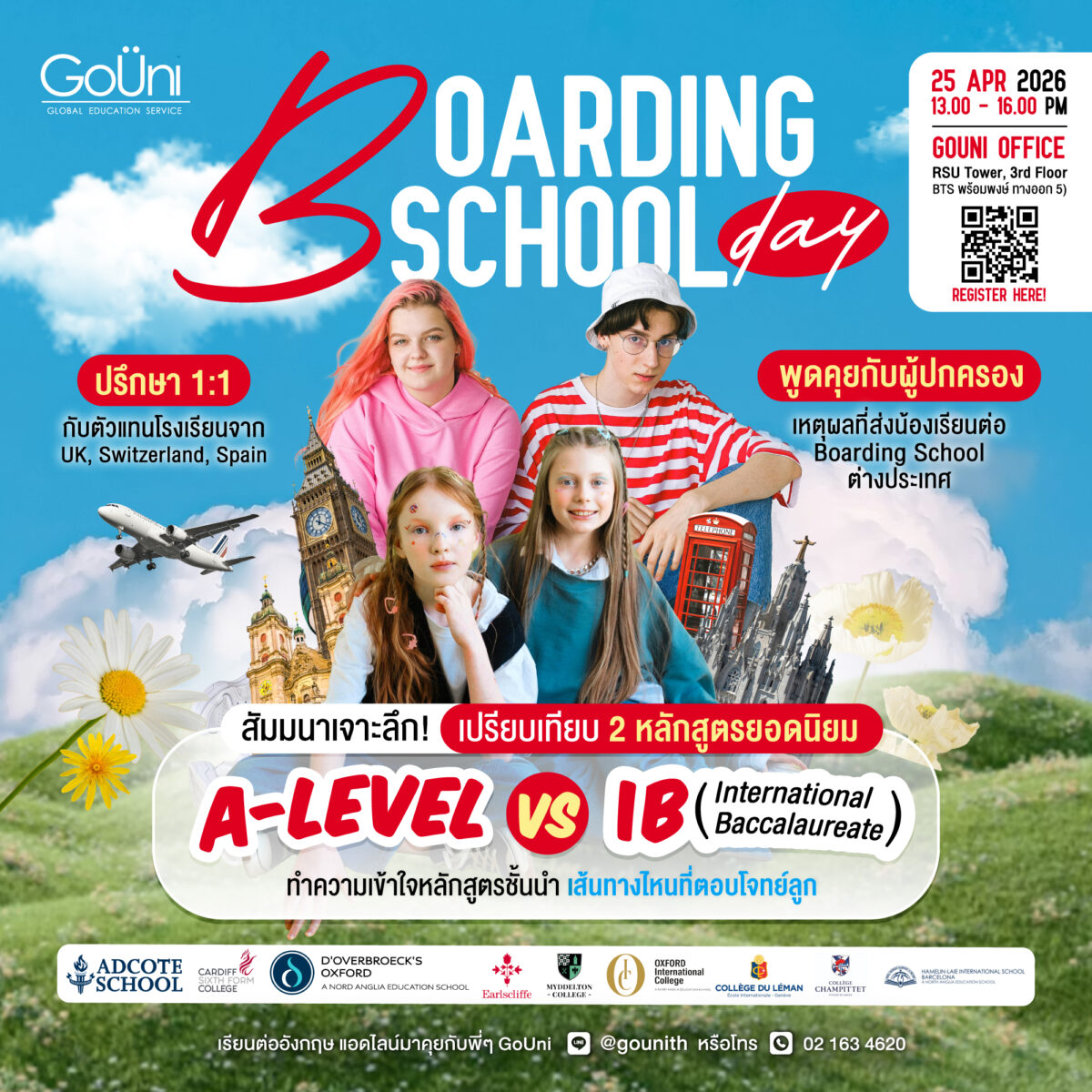งานนี้คุณพ่อคุณแม่ได้คำตอบแน่นอน GoUni พาสถาบัน Top จากทั้ง UK, Switzerland และ Spain มาไว้ในงานเดียว ตอบให้ครบทุกคำถาม ✨กับงาน Boarding School Day