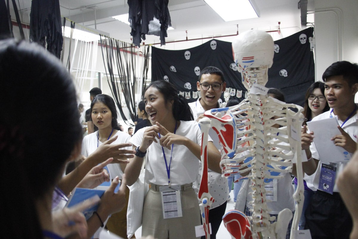 วันที่ 2 ได้มาเรียนรู้กันต่อในสาขาที่ 3 ก็คือฐานกายภาพบำบัด ที่เรารู้สึกชอบเป็นพิเศษ สาขานี้พี่ๆ เขาได้พาไปดูในภาควิชากายวิภาคศาสตร์ด้วยเป็นอะไรที่น่าตื่นเต้นมากๆ ได้เข้าไปเรียนรู้กับอาจารย์ใหญ่จริงๆ เจอจริงของจริงเลยครับ