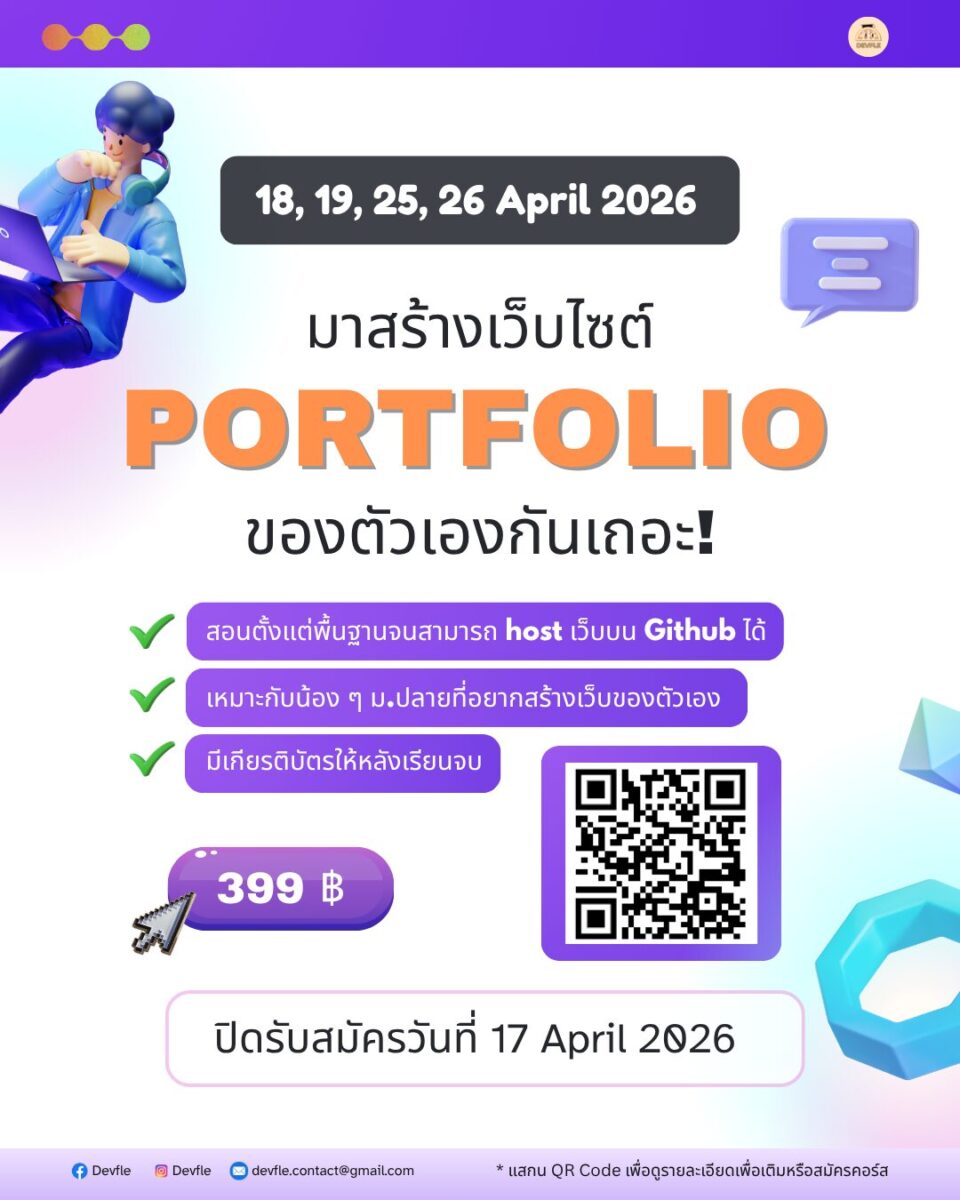 Devfle ชวนน้องๆ มัธยม และทุกคนที่สนใจ มาปลดล็อกสกิลสร้างเว็บไซต์ของตัวเองในไม่กี่ชั่วโมง!