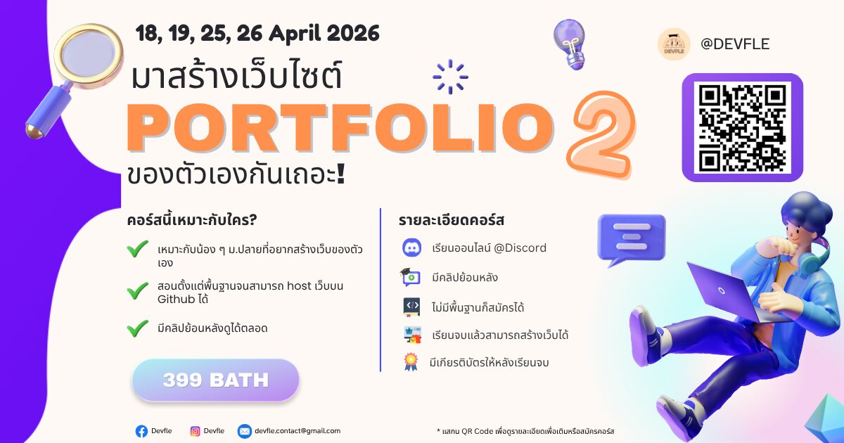 Devfle ชวนน้องๆ มัธยม และทุกคนที่สนใจ มาปลดล็อกสกิลสร้างเว็บไซต์ของตัวเองในไม่กี่ชั่วโมง!