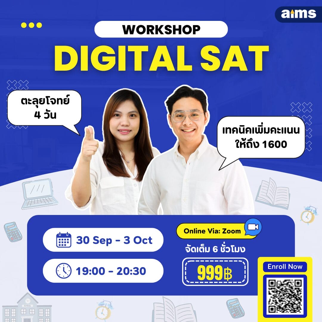 📣 Digital SAT Workshop: The Show Take 4 = คอร์สติวเข้ม 4 วัน ที่จะตะลุยโจทย์พร้อมเทคนิคเพิ่มคะแนนให้ถึง 1600 ก่อนสอบวันที่ 5 Oct