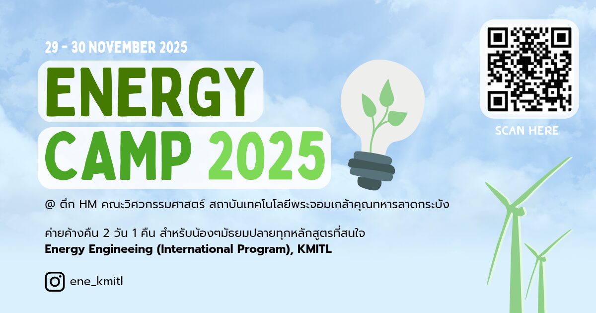 ถึงเวลาแล้วสำหรับการกลับมาของค่าย ENE Camp ครั้งที่4 ค่ายที่เปิดโอกาสให้น้องมัธยมปลายทุกหลักสูตรมาทำความรู้จักกับคณะวิศวกรรมศาสตร์ สาขาพลังงาน หลักสูตรนานาชาติ สถาบันเทคโนโลยีพระจอมเกล้าเจ้าคุณทหารลาดกระบัง