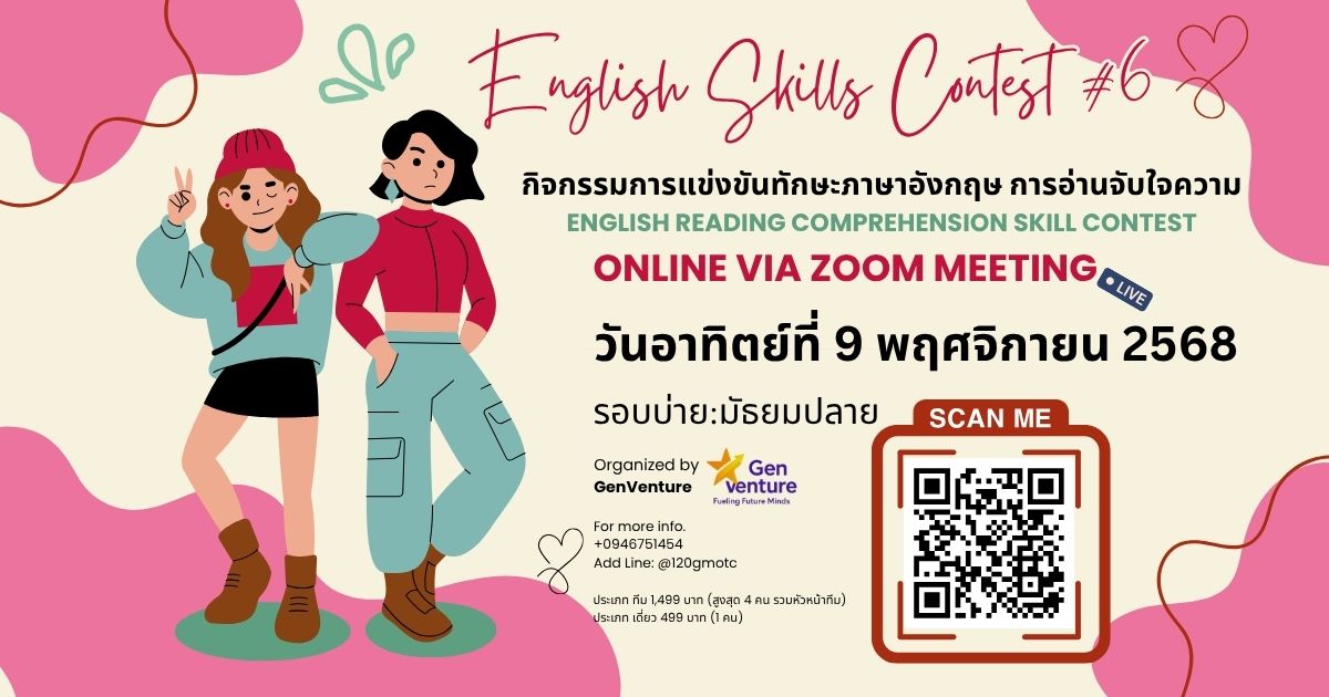 Gen Venture ขอเชิญชวนนักเรียนมัธยมปลายเข้าร่วม English Reading Comprehension Skill Competition