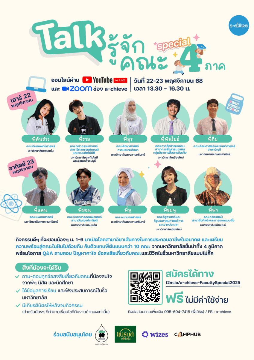 สมัครได้ที่ https://t2m.io/a-chieve-FacultySpecial2025