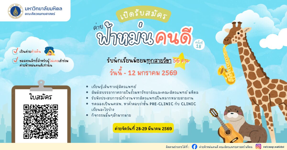 📍 สถานที่จัดค่าย คณะสัตวแพทยศาสตร์ มหาวิทยาลัยมหิดล ศาลายา