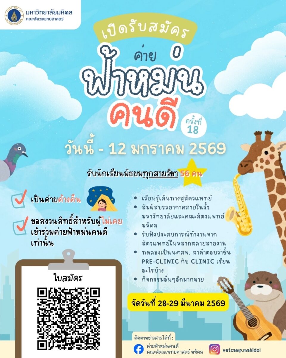 🌟 เปิดรับสมัครแล้ว 🌟 ค่ายฟ้าหม่นคนดี ครั้งที่ 18 🐶🐱🩺
