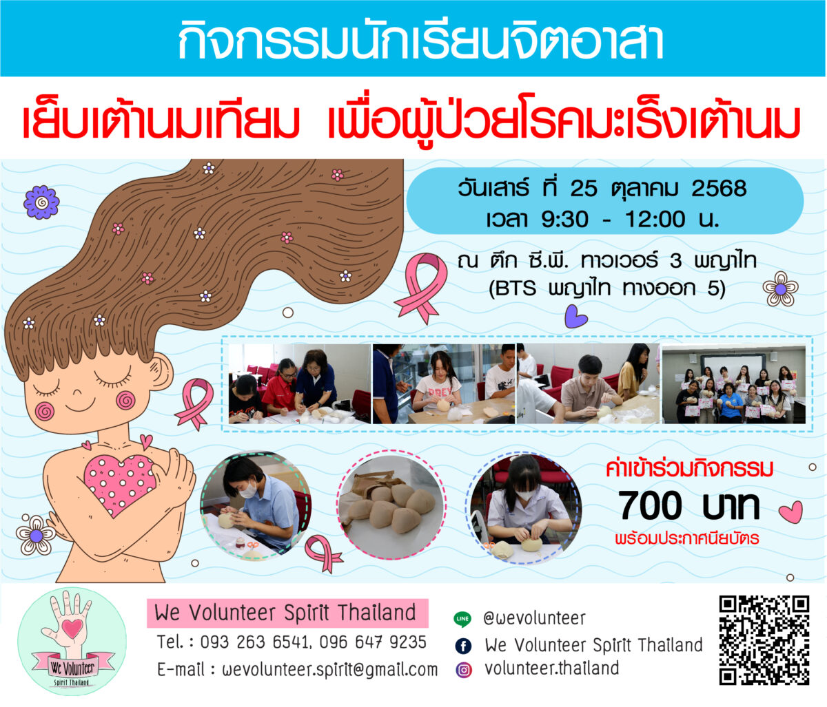 📣📣 อย่ารอช้าา ‼ We Volunteer Spirit Thailand ขอเชิญผู้สนใจเข้าร่วมกิจกรรมนักเรียนจิตอาสา “เย็บเต้านมเทียม เพื่อผู้ป่วยมะเร็งเต้านม”