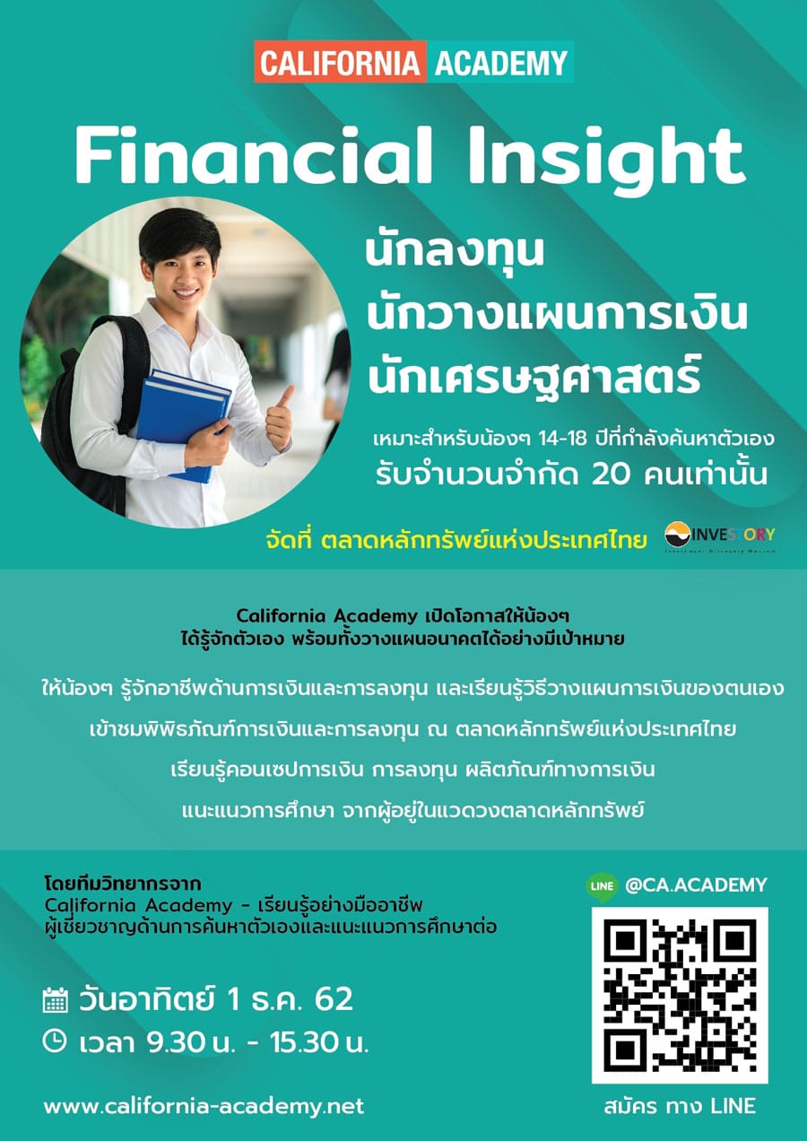 California Academy เปิดรับสมัครแล้ววันนี้กับกิจกรรม “Financial Insight” จุดประกายความรู้ด้านการเงิน การออมและการลงทุนเพื่อเยาวชนโดยมืออาชีพ