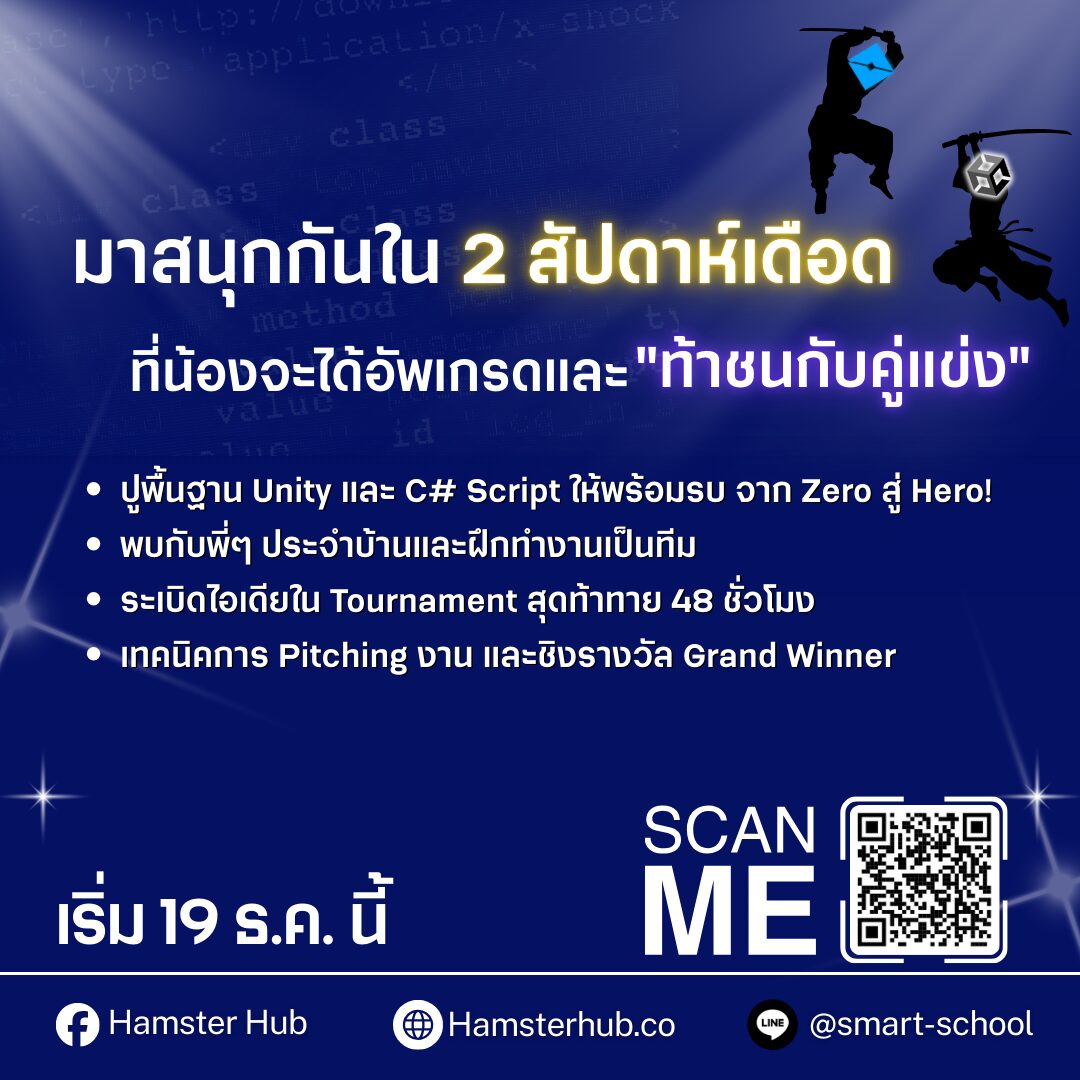 เป้าหมาย: สนุกกับเพื่อนในบ้าน, ฝึกพื้นฐานออกแบบและสร้างเกม, และเตรียม Skill ให้พร้อมรบ!