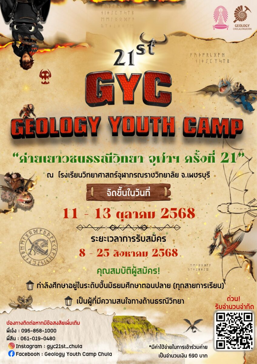 ค่ายเยาวชนธรณีวิทยา จุฬาลงกรณ์มหาวิทยาลัย หรือ GYC เป็นค่ายที่จัดขึ้นโดยพี่ๆ นิสิตภาคธรณีวิทยา คณะวิทยาศาสตร์ จุฬาลงกรณ์มหาวิทยาลัย เพื่อแนะแนวการศึกษาต่อ ให้ความรู้ และสร้างแรงบันดาลใจในสายงานธรณีวิทยาให้กับน้องๆ ที่เข้าร่วม