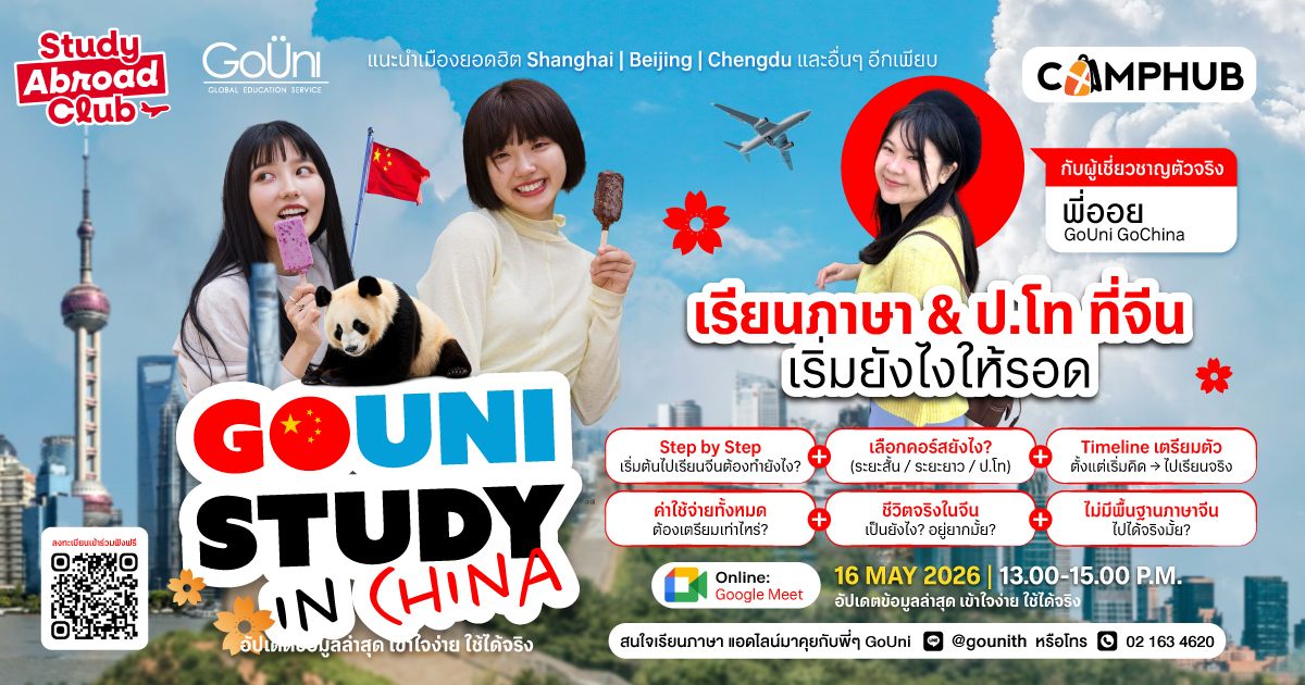 GoUni Study in China 101 เรียนภาษา & ป.โท ที่จีนเริ่มยังไงให้รอด Online Session ฟังฟรีบน Google Meet