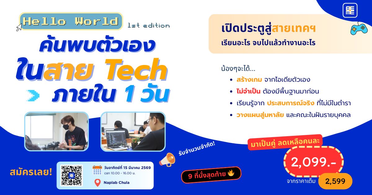 (คุ้มที่สุด! เรียนต่อเนื่องทั้งค่าย Hello World 15 มี.ค. และ Zero to Hero 22 มี.ค.)