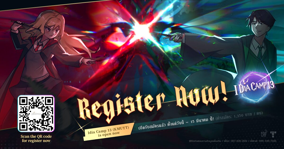 ค่าย I-dia Camp ครั้งที่ 13 จัดวันที่ 24–26 พฤษภาคม 2568 แบบ on-site ที่ มหาวิทยาลัยเทคโนโลยีพระเจ้าเกล้าธนบุรี วิทยาเขตบางขุนเทียน โดยมีค่าสมัครเพียง 1,350 บาท