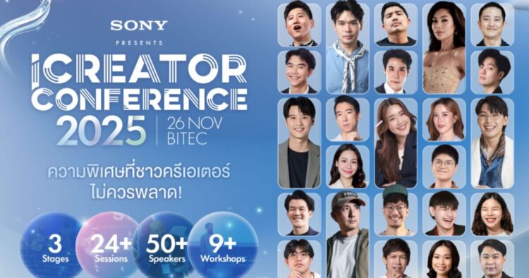 การกลับมาครั้งยิ่งใหญ่ของ “iCreator Conference 2025 Presented by Sony” งานมหกรรมรวมกลุ่ม คอนเทนต์ครีเอเตอร์ที่ใหญ่ที่สุดในไทย โดยจัดในวันพุธที่ 26 พฤศจิกายน 2568 ที่ครั้งนี้ได้รวมตัวเหล่าตัวครีเอเตอร์และอินฟลูเอนเซอร์จากหลากหลาย วงการรวมถึงแบรนด์และเอเจนซีที่ถือเป็นที่สุดของแต่ละอุตสาหกรรม มาร่วมแชร์ประสบการณ์ปลุกพลังและ เติมแรงบันดาลใจให้ครีเอเตอร์ พร้อมที่จะกำหนดเป้าหมายในอนาคตของตัวเองสู่ปี 2026