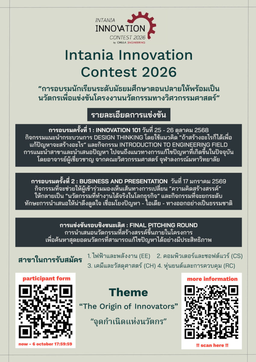 รางวัลชนะเลิศประจำสาขา, รางวัลชนะเลิศในด้านธุรกิจ และ รางวัล Intania Innovation Cup 2026