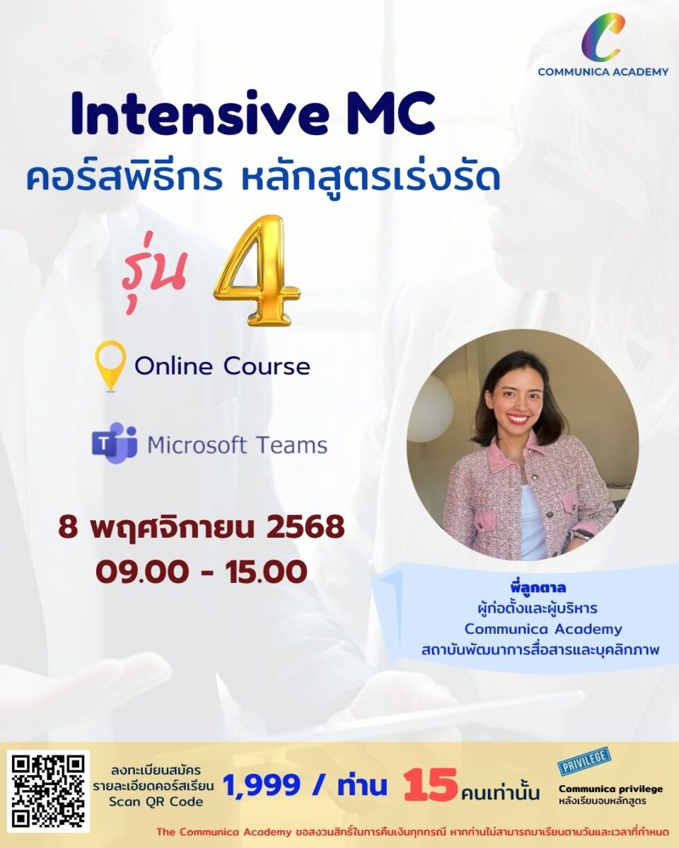ถ้าคุณอยากเป็นพิธีกรมืออาชีพ พัฒนาทักษะการพูดสื่อสารให้ดียิ่งขึ้น แต่ไม่มีพื้นฐานการเป็นพิธีกรมาก่อน หรือมีพื้นฐานมาบ้างแล้ว คอร์สนี้เป็นคอร์สเร่งรัด ที่รวมเทคนิคสำคัญทั้งหมดให้คุณนำไปใช้ในการเป็นพิธีกรได้จริง ทั้งการเขียนสคริป ฝึกออกเสียงเสริมบุคลิกภาพ การแก้ไขสถานการณ์ฉุกเฉิน คอร์สเจาะลึกครบทุกมิติ ทำให้คุณมั่นใจ กล้าพูดมากขึ้น