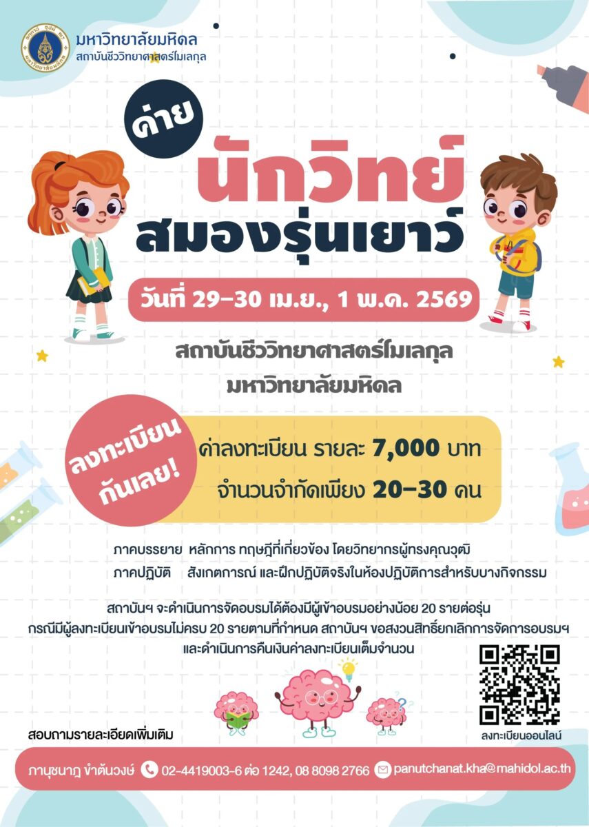 🧠🔬 เปิดโลกวิทยาศาสตร์สมองให้น้อง ๆ ระดับชั้นมัธยม และผู้สนใจทั่วไป มาร่วม “ค่ายนักวิทย์สมองรุ่นเยาว์”