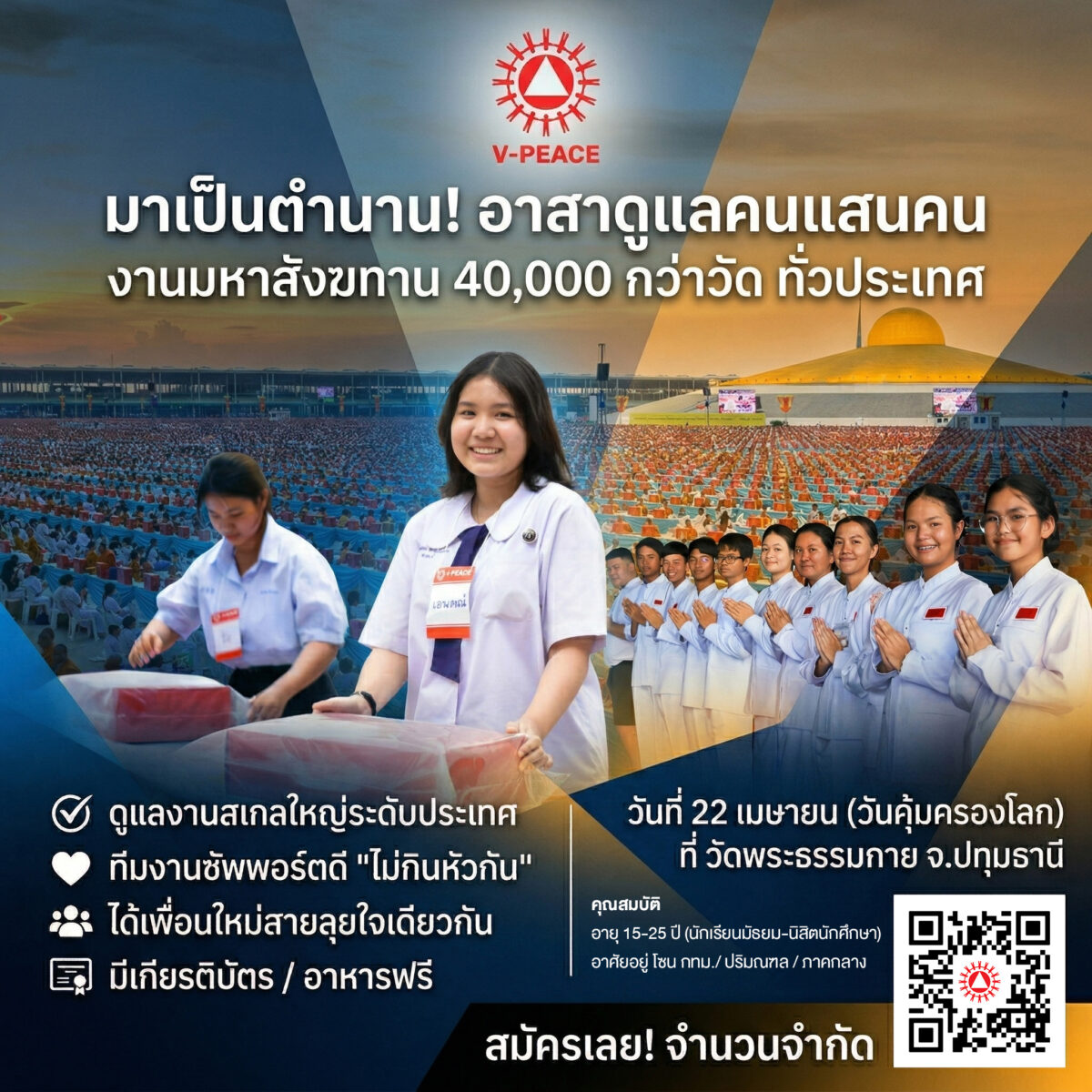 V-PEACE ขอเชิญชวนน้องๆ ระดับมัธยมและมหาวิทยาลัยขาลุย อายุ 15-25 ปี มาพิสูจน์พลังใจและร่วมสร้างประวัติศาสตร์ในภารกิจสุด Epic!