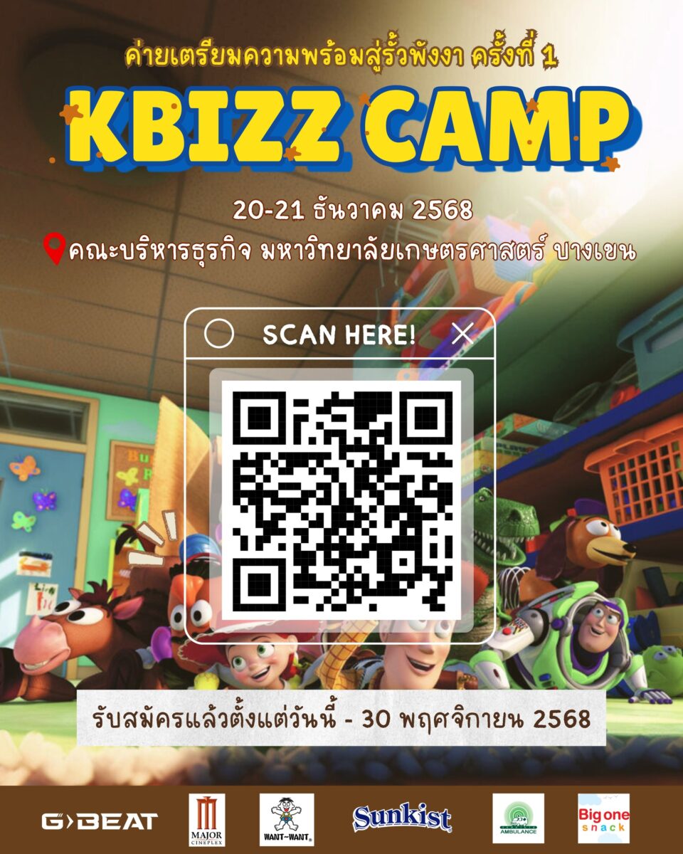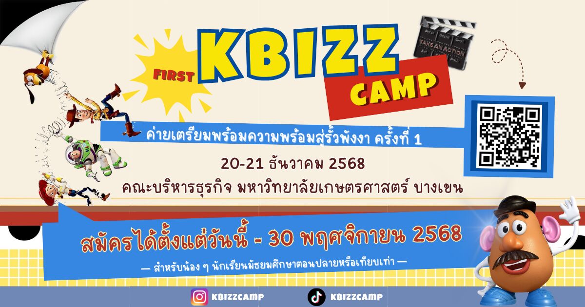 KBizz camp ค่ายเตรียมความพร้อมสู่รั้วพังงา ครั้งที่ 1 เราไม่ได้ให้แค่ความรู้ แต่น้อง ๆ จะได้ฝึกลงมือทำ ได้ลองคิดแบบนักบริหารตัวจริง และยังได้พูดคุยกับรุ่นพี่จากทุกภาควิชาในคณะบริหารธุรกิจ มหาวิทยาลัยเกษตรศาสตร์ บอกเลยงานนี้ทั้งสนุก! ทั้งได้เรียนรู้! แถมยังได้เจอเพื่อน ๆ ที่มีความสนใจในเรื่องเดียวกันอีกด้วย แล้วพบกันในค่ายน้าา