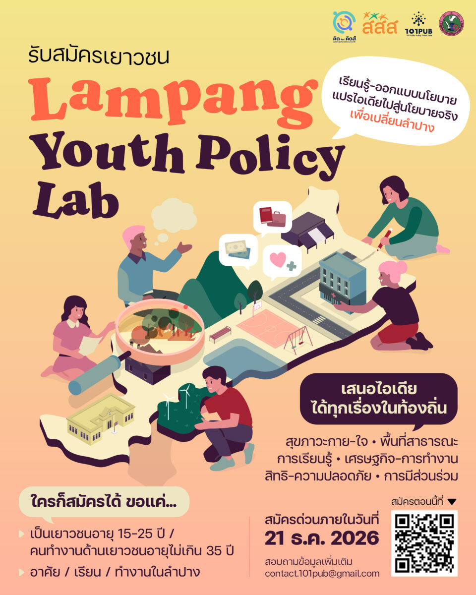 📯 ชวนเยาวชน-ผู้ปฏิบัติงานด้านเด็กและเยาวชน สมัครเข้าร่วมเป็นอาสาสมัคร ‘นักวิจัยเยาวชน’ ร่วมฝึกอบรมทักษะ ลงมือพัฒนา และขับเคลื่อนข้อเสนอนโยบายสาธารณะ ร่วมกับ @อบจ.ลำปาง สร้างความเปลี่ยนแปลงเพื่อเยาวชนและสังคมไทย ภายใต้โครงการ Kid for Kids’ Youth Policy Lab in Lampang 2026