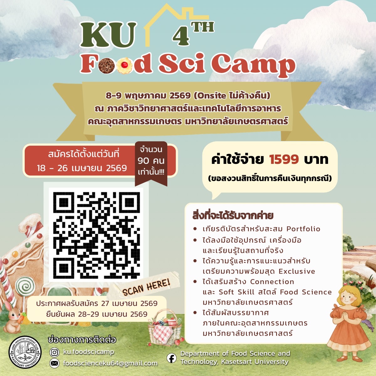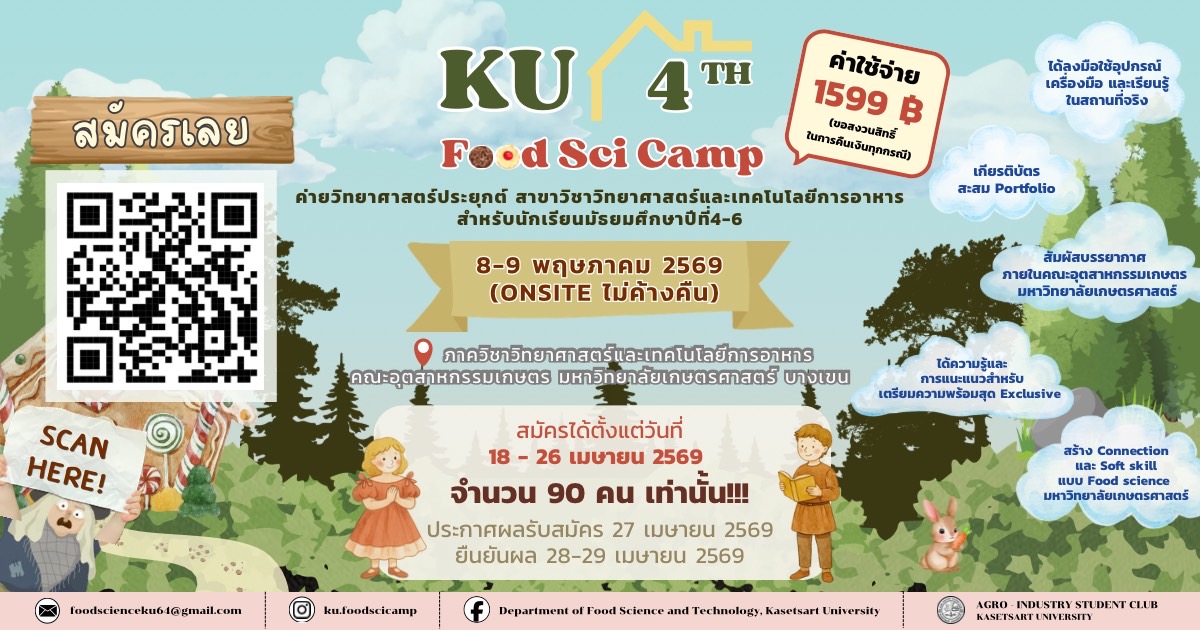 āļāđāļēāļĒ KU foodsci camp āļāļąāļāļ§āļąāļāļāļĩāđ 8-9 āļāļĪāļĐāļ āļēāļāļĄ 2569 āđāļ§āļĨāļē 9:00 – 16:30 āļ. (āđāļĄāđāļāđāļēāļāļāļ·āļ)