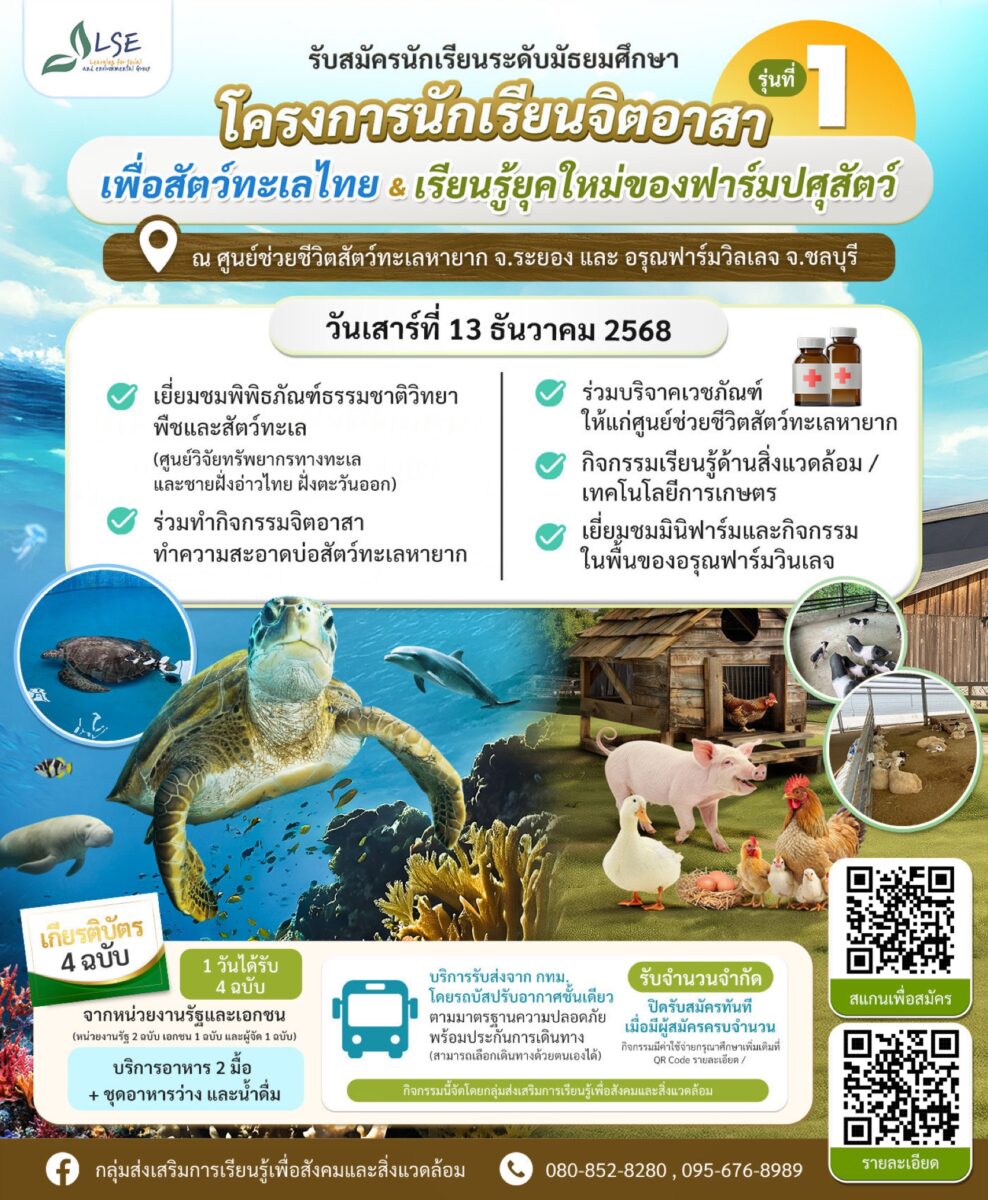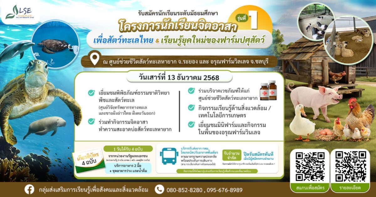 เข้าร่วมโครงการ “นักเรียนจิตอาสาเพื่อสัตว์ทะเลไทย เรียนรู้ยุคใหม่ของฟาร์มปศุสัตว์” รุ่นที่ 1
