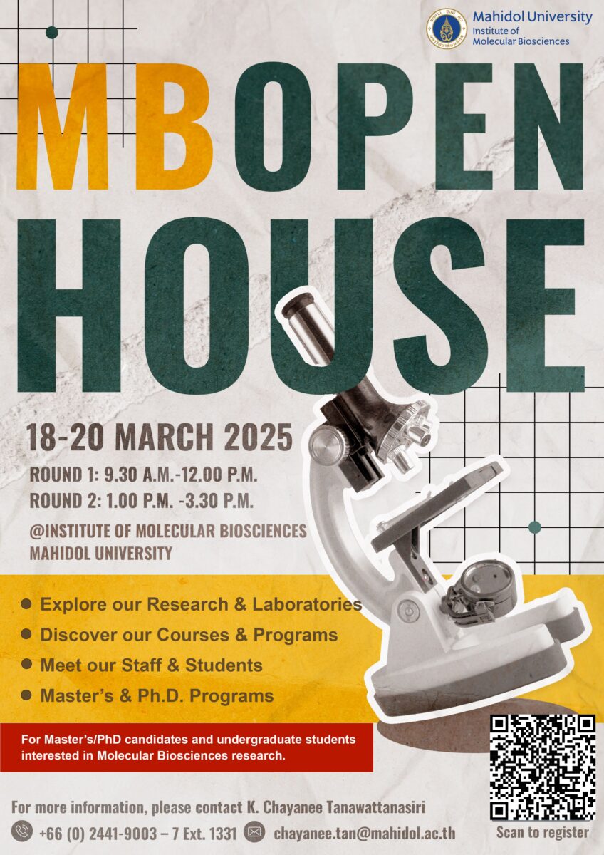 📲 ลงทะเบียนเข้าร่วมกิจกรรมได้ที่: https://mb.mahidol.ac.th/web/3-mar18-20-2025-mb-open-house/