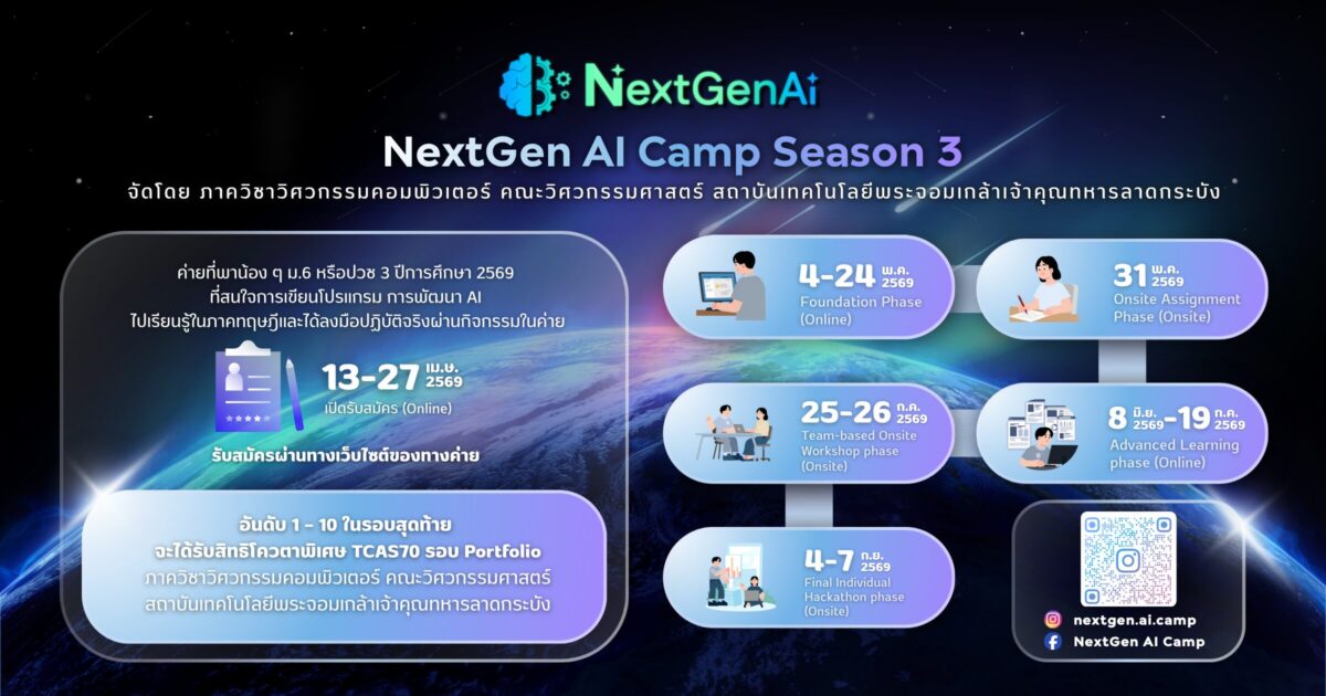 NextGen AI Camp #3 คือพื้นที่ของคนรุ่นใหม่ ที่อยากเรียนรู้ คิดเป็น และสร้างสรรค์โลกด้วยเทคโนโลยีแห่งอนาคต