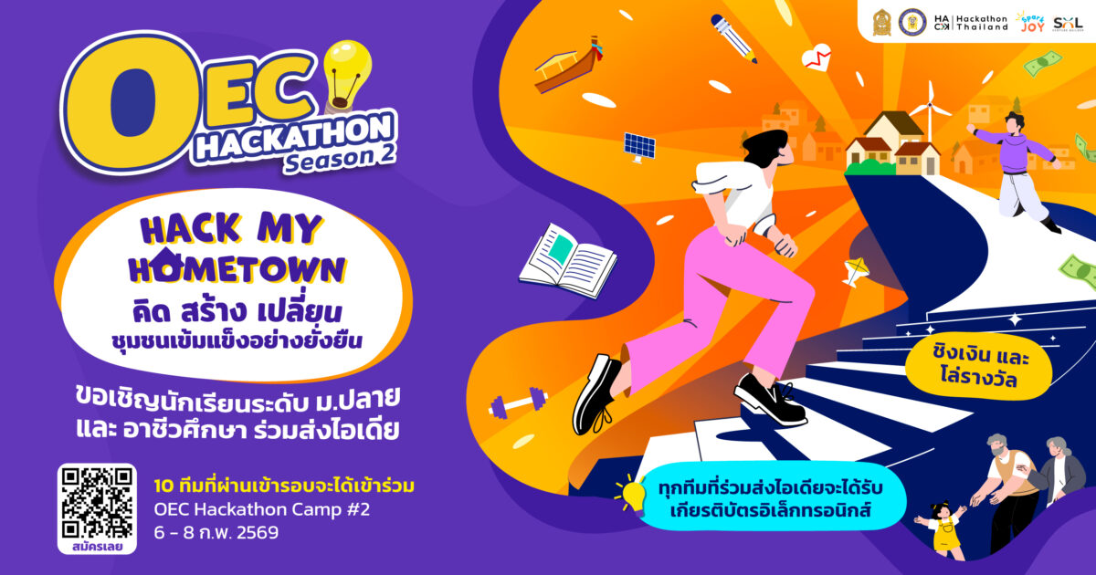 สำนักงานเลขาธิการสภาการศึกษา (OEC) ชวนน้อง ๆ ระดับ ม.ปลาย และ อาชีวศึกษา (ปวช.) ทั่วประเทศ ไม่จำกัดสังกัดและสาขา มาร่วมกิจกรรม “OEC Hackathon Season 2: Hack my Hometown คิด สร้าง เปลี่ยน ชุมชนเข้มแข็งอย่างยั่งยืน”