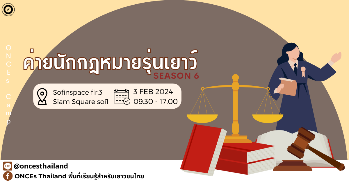 พบกับค่ายพิเศษ ที่จะทำให้น้อง ๆ ได้สัมผัส และเข้าใจในการเรียน ประสบการณ์ ทักษะที่จำเป็นของการเป็นนักกฎหมาย เพื่อเลือกศึกษาต่อในระดับอุดมศึกษาพร้อมความรู้แนะแนวในด้านเรียนจากรุ่นพี่คณะนิติศาสตร์ กับพี่วิทยากรที่ขนมาทั้ง 3 คน เรียนรู้ไปด้วยกันกับonces camp กันได้เลย !!