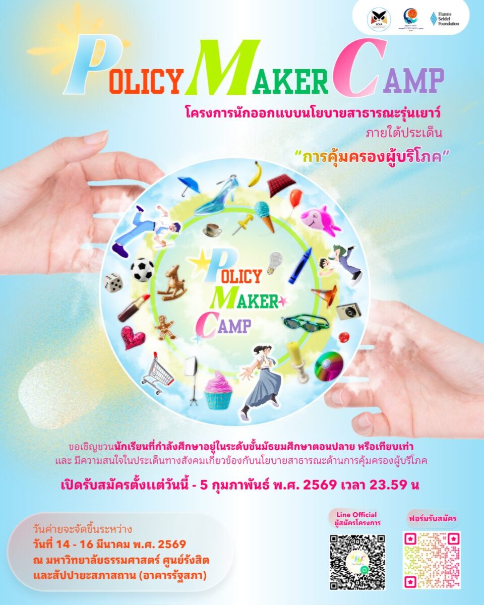 📍เปิดรับสมัครเเล้วโครงการนักออกแบบนโยบายสาธารณะรุ่นเยาว์ Policy Maker Camp ภายใต้หัวข้อการคุ้มครองผู้บริโภค ประจำปี 2569