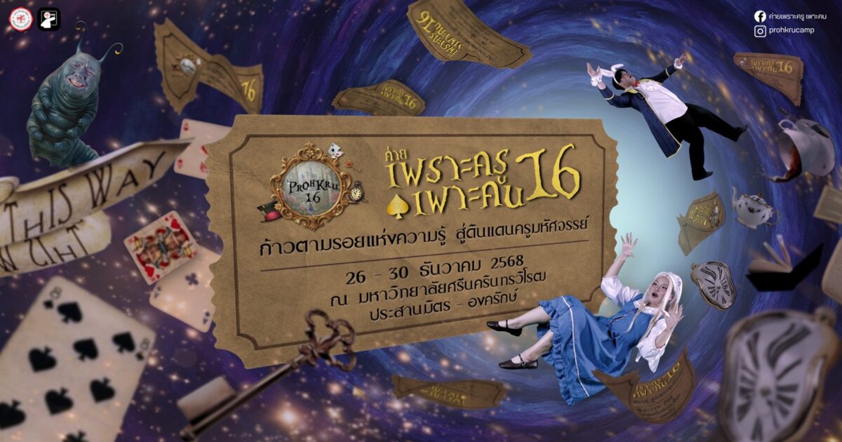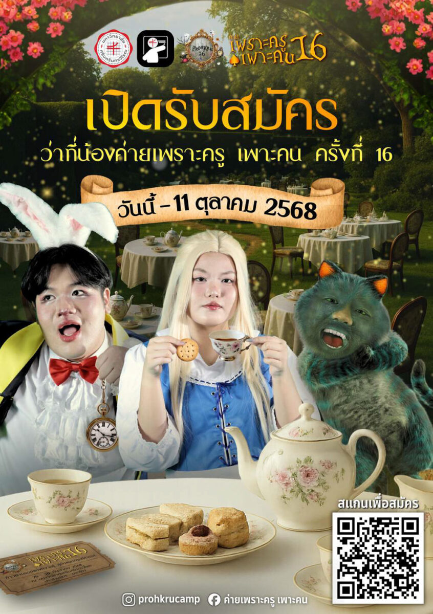 🕰️ กริ๊ง กริ๊ง ถึงเวลาน้ำชาแล้ว ขอร่วมเชิญชวนนักผจญภัยตัวน้อยทั่วประเทศทุกท่าน เข้าร่วมงานน้ำชา เพราะครู เพาะคน ครั้งที่ 16 โดยงานน้ำชาของเราเปิดรับสมัครนักผจญภัยตัวน้อยที่มีความสนใจในวิชาชีพครู และต้องการค้นหาความเป็นครูตัวเอง เพื่อเข้าสู่การผจญภัยในดินแดนครูมหัศจรรย์ ท่านนักผจญภัยจะได้รู้จักตัวเองมากยิ่งขึ้น การเข้าร่วมครั้งนี้ พวกท่านได้รับประสบการณ์ ความสนุกสนาน มิตรภาพ และความทรงจำดี ๆ ผ่านการผจญภัยในดินแดนครูมหัศจรรย์ด้วยกิจกรรมต่าง ๆ ที่จะทำให้เส้นทางแห่งความเป็นครูชัดเจนในใจพวกท่านมากขึ้น ว่าพวกท่านนั้น จะเลือกเส้นทางใดต่อไป เอาล่ะถ้าพร้อมแล้วก็เตรียมชุดให้ดี บัตรเชิญงานเลี้ยงน้ำชามาถึงหน้าบ้านพวกท่านแล้ว! 🎟️