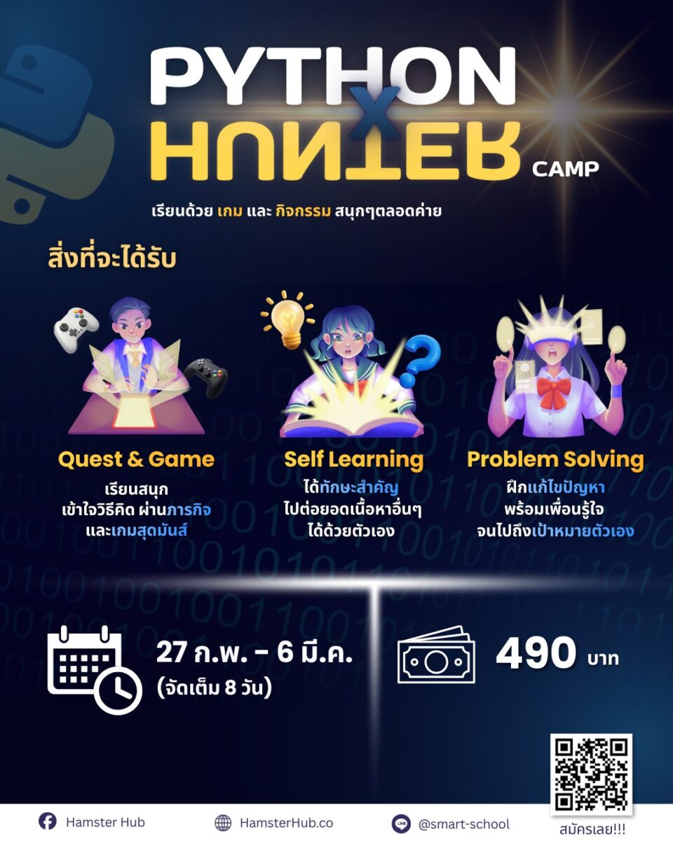 🌟 ค่ายนี้จะพาน้องๆไปเรียนรู้การเขียนโปรแกรมภาษา Python ด้วยเกม มีกิจกรรมสนุกๆตลอดค่าย และพี่ๆ มากประสบการณ์คอยฝึกน้องตลอดเวลา 🌟