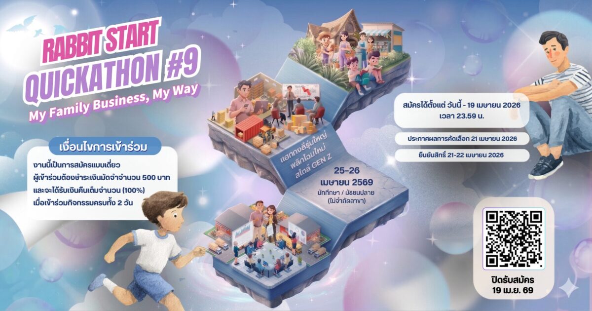 คิดไอเดียธุรกิจภายใน 3 ชั่วโมง!? เป็นไปได้มั้ย? เปิดรับสมัครแล้วกับงานแข่งขัน Quickathon ครั้งที่ 9! ความท้าทายครั้งใหม่ที่จะทำให้คุณค้นพบตัวเองในแบบที่ไม่เคยรู้มาก่อน ✨