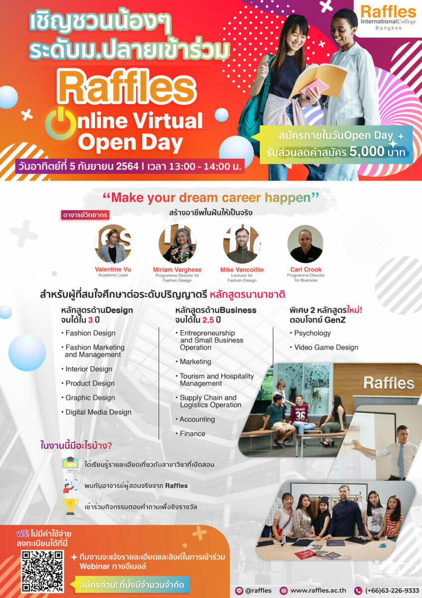“ขอเชิญชวนน้องๆระดับมัธยมปลาย เข้าร่วม Raffles Online Virtual Open Day เปิดบ้านต้อนรับเพื่อเตรียมพร้อมสู่รั้วมหาวิทยาลัย 🌈✨ ไปกับวิทยาลัยนานาชาติราฟเฟิลส์ วิทยาเขตบางนา ตัดสินให้ดี….เพราะที่นี่จะพาน้องเรียนจบภายใน 2.5และ3 ปีเท่านั้น!