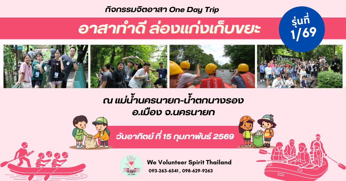 🚣 สัมผัสประสบการณ์ใหม่ 🫧 อาสาด้านอนุรักษ์สิ่งแวดล้อมกับกิจกรรม One day trip “อาสาทำดี ล่องแก่งเก็บขยะ” ณ แม่น้ำนครนายก-น้ำตกนางรอง อ.เมือง จ.นครนายก 🚣