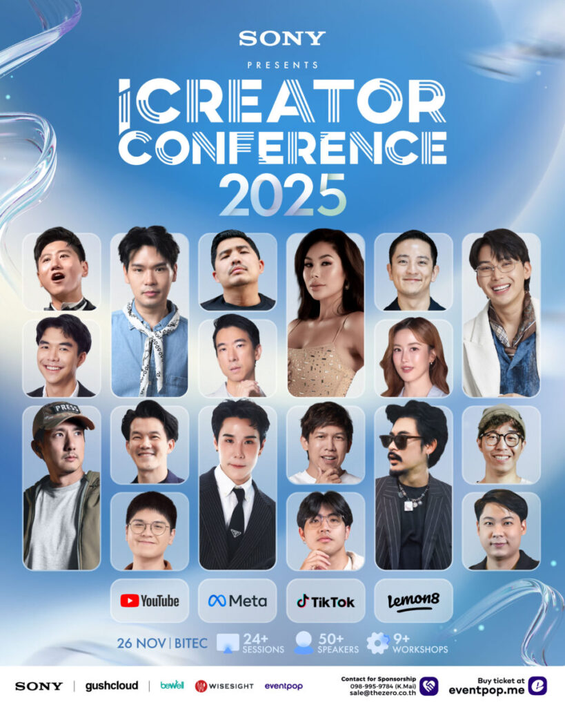 นอกจากนี้งาน iCreator Conference 2025 Presented by Sony ยังถือเป็นการรวมตัว แพลตฟอร์มระดับโลก ครีเอเตอร์ อินฟลูเอนเซอร์ระดับท็อปของเมืองไทย และแบรนด์ชั้นนำ เจ้าของแคมเปญดัง มาร่วมแบ่งปันประสบการณ์และเส้นทางสู่ความสำเร็จ จัดเต็มกับ 3 เวทีหลัก ที่รวม Speakers กว่า 50+ ท่าน, 24+ Sessions พร้อมกับ 9+ Workshops ให้ผู้เข้าร่วมงาน ได้รับทั้งความรู้ แนวคิด แรงบันดาลใจ เพื่อพัฒนาต่อไปสู่ตัวตนที่สมบูรณ์ในอนาคต