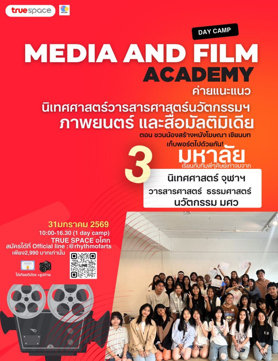 ค่าย Media and Film Academyเปิดโลกนิเทศศาสตร์และภาพยนตร์ สัมผัสประสบการณ์จริงจากผู้เชี่ยวชาญตัวจริงในวงการ ได้ทั้งประสบการณ์ ผลงานใส่พอร์ต และประกาศนียบัตร