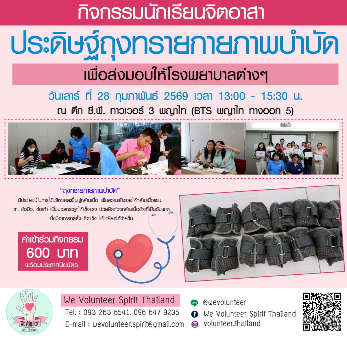 💝💞 We Volunteer Spirit Thailand ขอเชิญน้องๆ ที่สนใจเข้าร่วมกิจกรรมนักเรียนจิตอาสาประดิษฐ์ถุงทรายกายภาพบำบัด เพื่อส่งมอบให้โรงพยาบาลต่างๆ