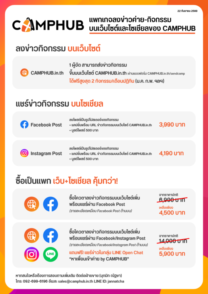 หากสนใจแพกเกจประชาสัมพันธ์เพื่อให้กิจกรรมของคุณถูกกระจายใน social media มากขึ้น สามารถติดต่อได้ที่ [email protected] ครับ